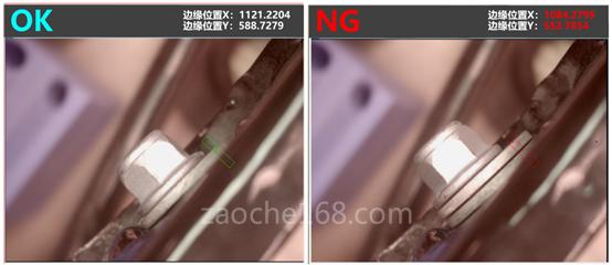 同样的,通过边缘位置计算,首先定义正确安装状态下的边缘位置X轴和Y轴的坐标点。之后的每一个也与此坐标值进行对比,一旦坐标值出现偏差则说明卡子并未安装到位,判断为NG。