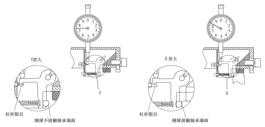 图5 百分表及杠杆在测量状态和复位状态