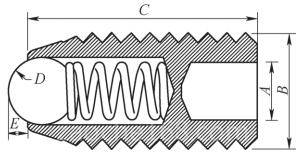 杠杆需绕中心的轴灵活旋转,宜采用间隙配合。同时为保证测量精度,尽量减小间隙。由于检具零部件是单件生产,所以可选择较高生产精度。采用H7/g6的配合间隙,并在杠杆上攻M6的螺纹以固定弹性螺钉(见图6)。弹性螺钉头部有一颗可以滚动的钢珠,内部有弹簧支撑。弹簧可以消除杠杆孔与轴的间隙,提高测量精度,滚珠保证灵活转动。
