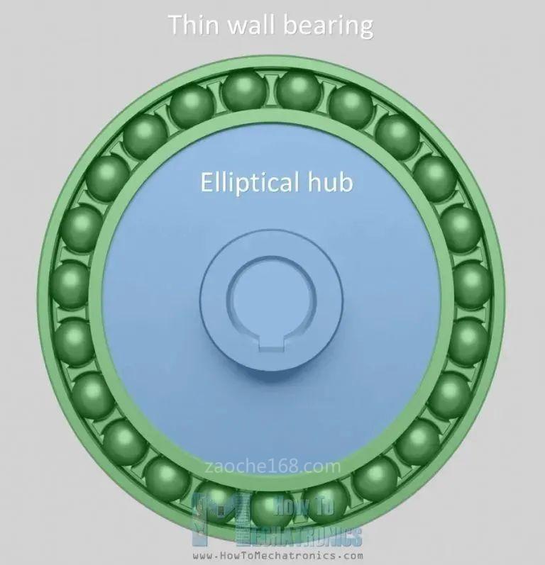 波形发生器为椭圆形,由一个椭圆形轮毂和一个特殊的薄壁轴承组成,轴承遵循轮毂的椭圆形。这是齿轮组的输入,它连接到电机轴上。