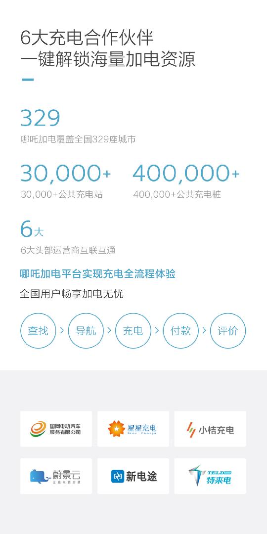 截至目前,哪吒加电地图已全面完成与国家电网、星星充电、小桔充电、蔚景云、新电途、特来电6大头部运营商互联互通,为用户提供海量充电地点选择,无需登录任何第三方平台,通过哪吒汽车APP和哪吒加电小程序,哪铁即可一键充电并直接结算,无论短途还是长途出行,都能尽享加电无忧。