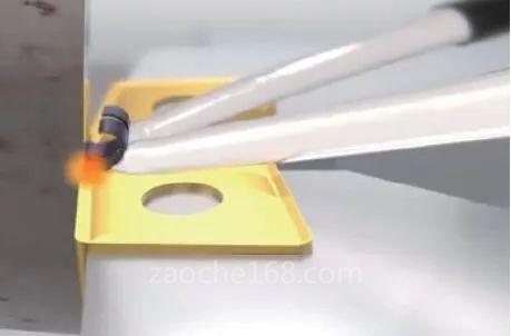 高压射流使切削液精准抵达切削区域[4],切屑卷曲成C形,并形成液压楔,对切屑卷曲高温处进行快速急冷淬火,然后压力推断切屑,形成连续的高效断屑加工。