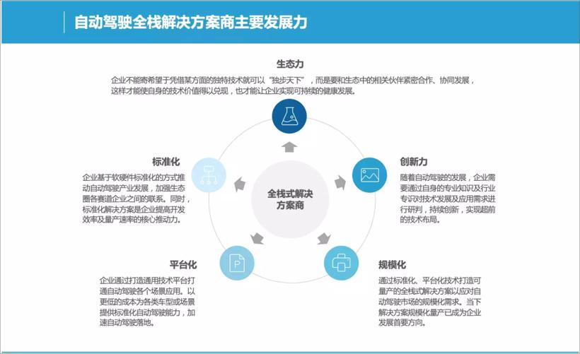 当下智能驾驶全栈式解决方案商主要通过打造标准化方案、平台化技术,集成软硬件协同能力,向规模化量产演进。