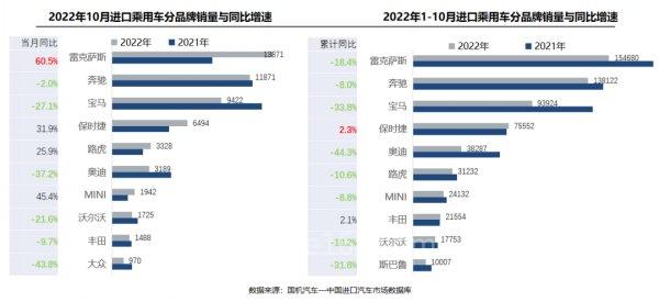中国汽车流通协会分析,10月数据同比上升,主要原因为去年同期芯片短缺形成的低基数。今年10月进口车市场受疫情反复及消费需求减弱等因素影响,呈现旺季不旺特征。