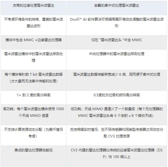 这两种不同的毫米波雷达处理方法在下表中进行了总结: