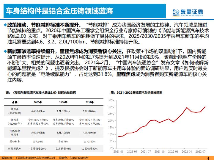 ◆政策推动+”里程焦虑”推动轻量化快速发展,铝合金市场空间广阔。面对节能减排政策推动和新能源车里程焦虑的现实,轻量化成为重要的技术方向,铝合金材料以其性价比优势,成为轻量化的优选,市场空间2025年有望达到3095亿元,2020-2025年复合增长率达到17.1%。