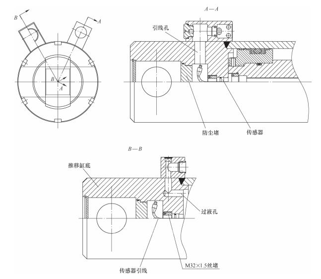 由图1、图2可以看出,传感器安装在缸底最里面,靠其自身的密封圈