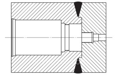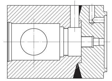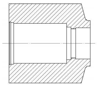 推移千斤顶缸底结构二如图4所示,缸底长度过长(L > 190mm )且要保证内孔精度,