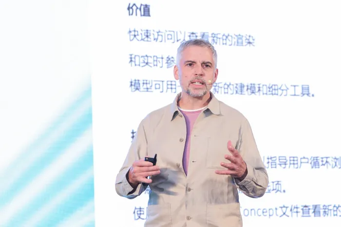 欧特克体验设计总监Mathieu Lesage、欧特克人工智能软件开发总监Matthias Bauer为我们带来了Alias 2026与VRED 2026 渲染效果全面提升和Alias-VRRD实时参照功能的演示。在2026 版本中,Alias 内嵌VRED 渲染器,设计师无需切换软件。建模过程中可直接调用VRED的渲染引擎,实时预览接近最终效果的可视化成果,彻底告别“建模 - 导出 - 导入 - 渲染”的流程重复,构建了“无缝协同 + 实时同步”的设计流,为汽车等行业设计提供效率与质量双重保障。
